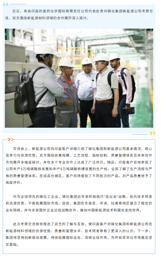 深化新能源材料合作,印度客户到贵州磷化集团考察交流