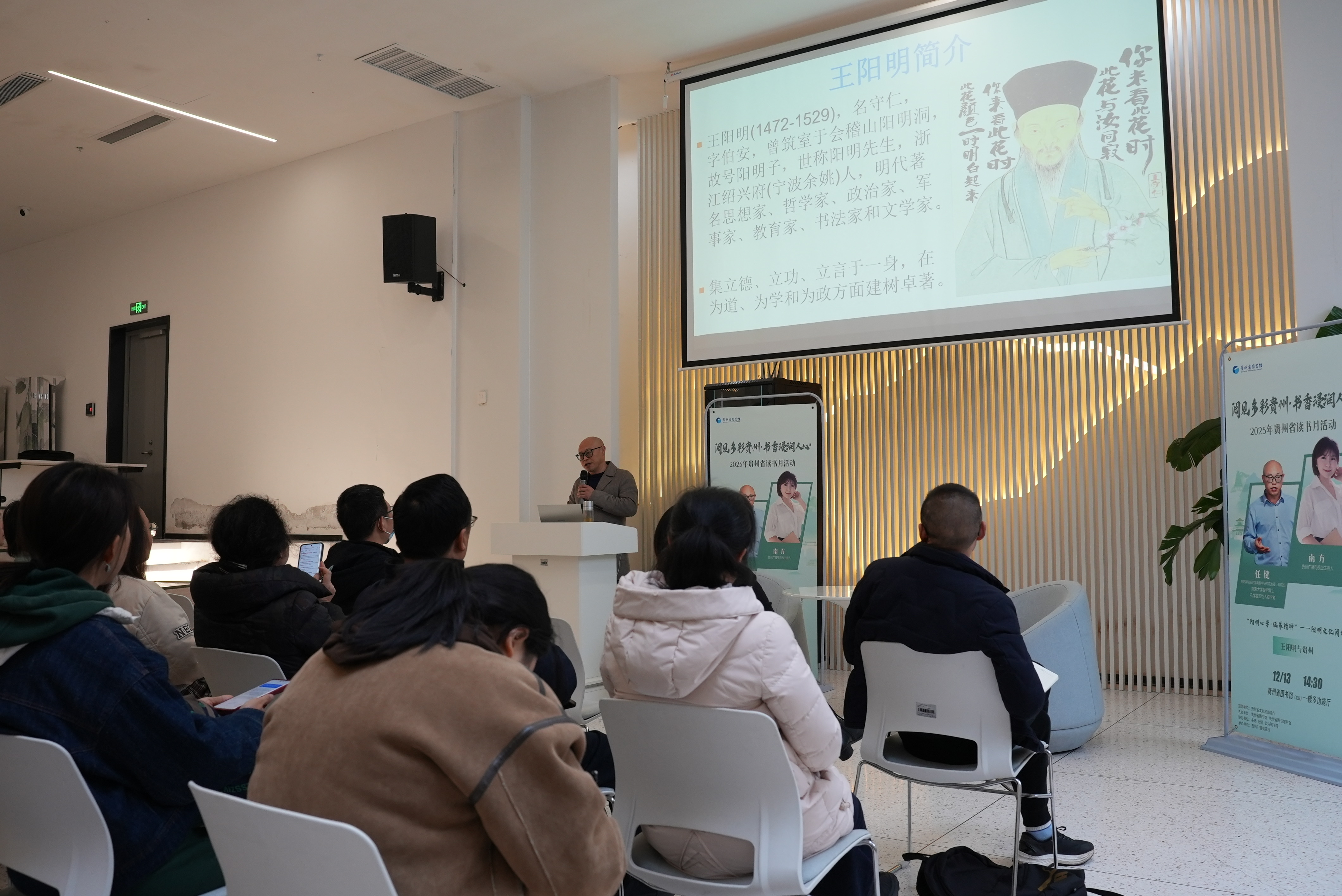 12月13日,贵州省图书馆内书香氤氲、思想激荡,2025年贵州省读书月系列活动之“阳明心学·涵养精神”阳明文化阅读周正式拉开帷幕。活动特别邀请贵阳学院阳明学与黔学研究院教授、副院长任健博士,以“王阳明与贵州文化”为主题开展专题讲座,带领现场读者穿越五百年时光,探寻阳明心学与贵州这片土地的深厚羁绊。