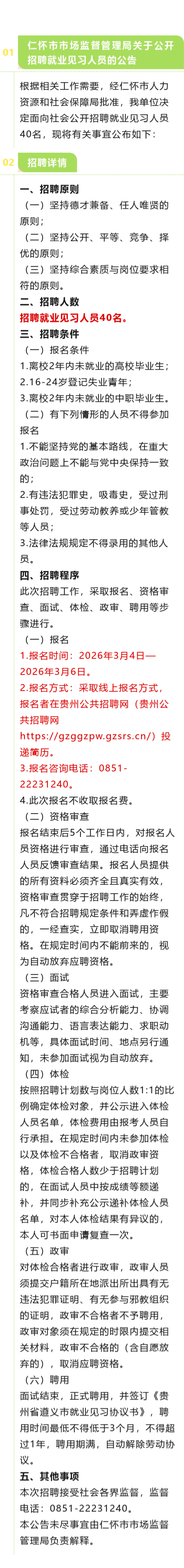 市场监督管理局招聘40人!报名截止时间:3月6日!