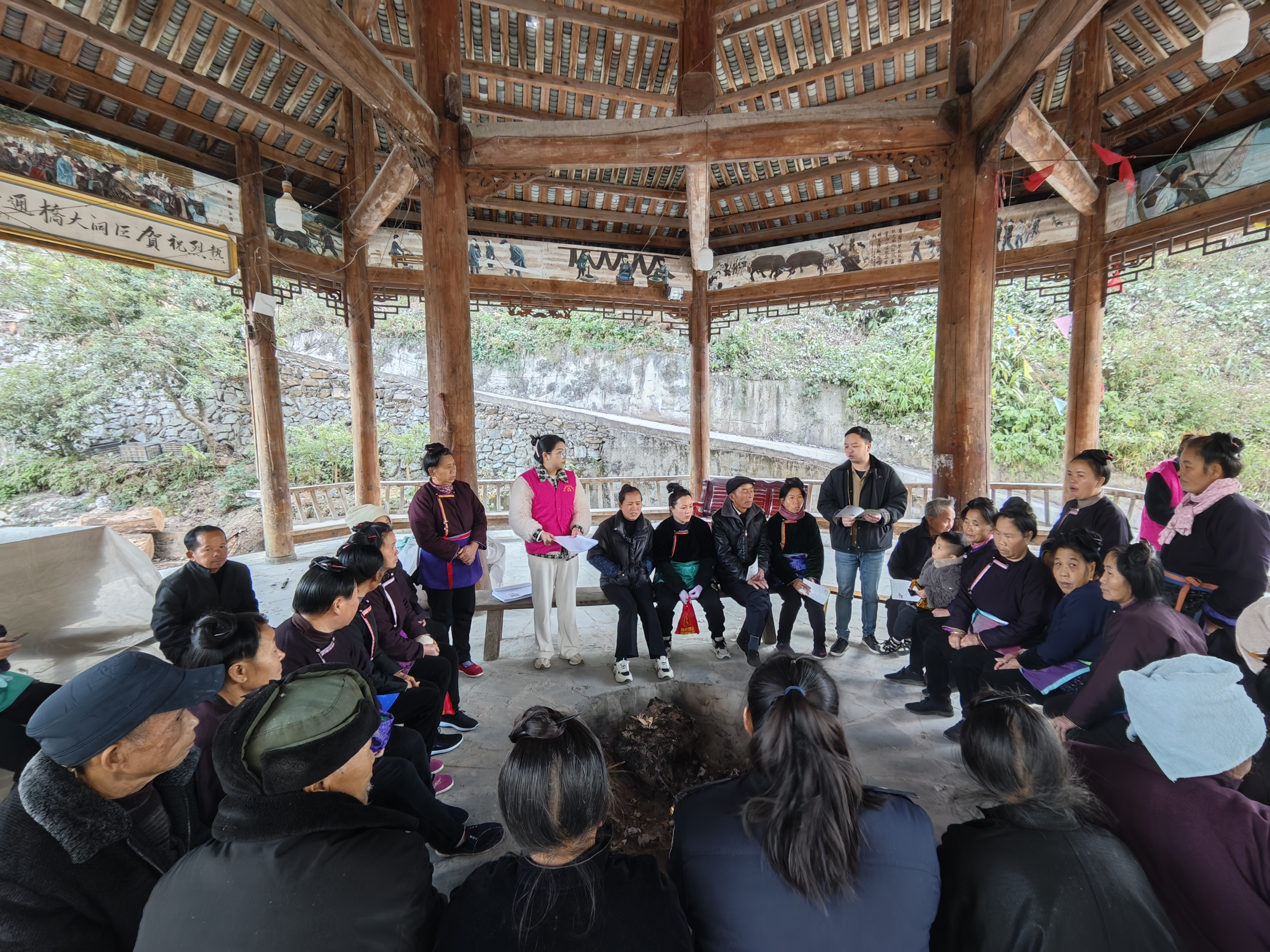 从江县下江镇巨洞村鼓楼下开展文明上网、移风易俗宣传。卢邦杰摄