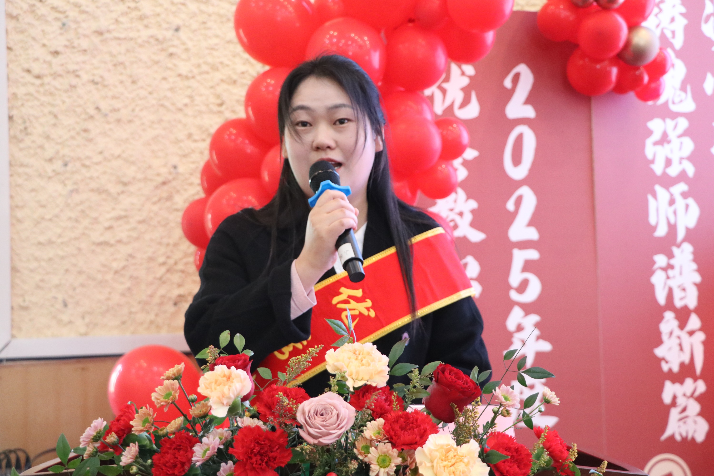 新进教师代表靳壮壮郑重承诺,将深耕教学主业、强化教研创新、传承优良校风、坚守育人初心,以饱满热情投身职业教育事业,为学院发展添砖加瓦。