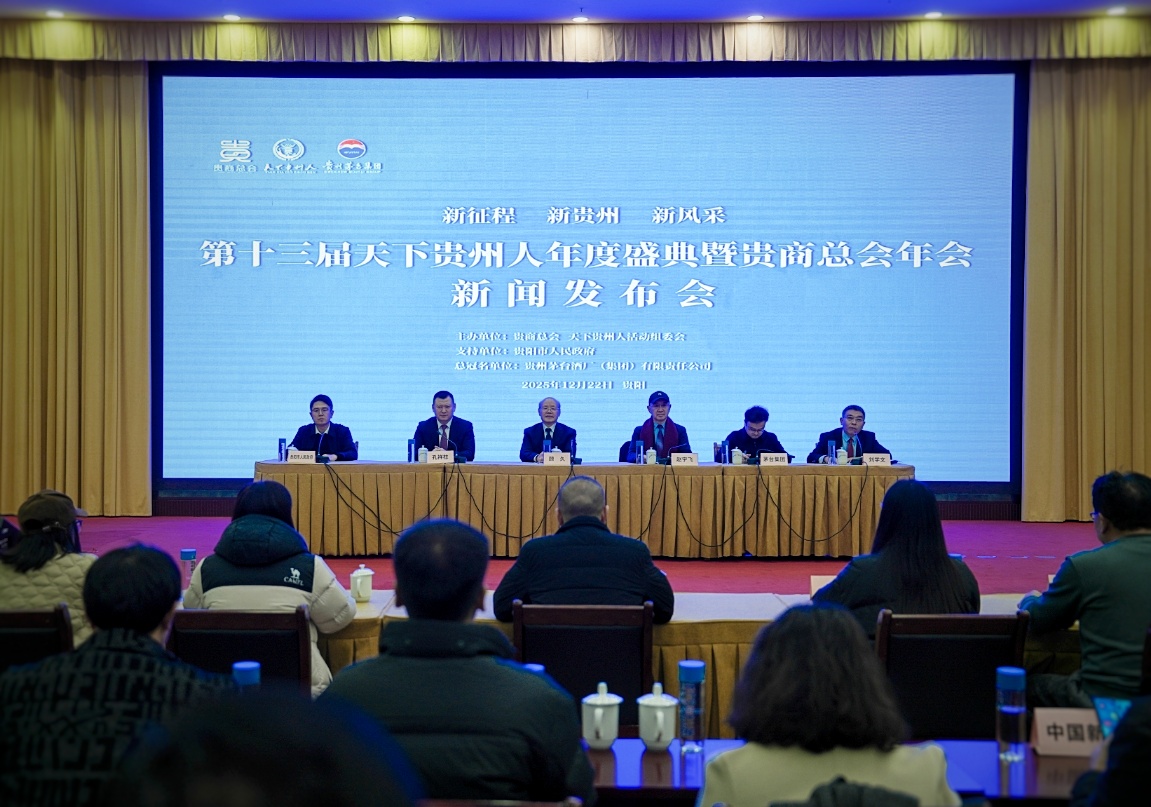 记者从12月22日组委会召开的新闻发布会上获悉,第十三届“天下贵州人”年度盛典暨贵商总会年会将于2025年12月31日在贵阳举行。本次活动由贵商总会、天下贵州人活动组委会联合主办,贵阳市人民政府作为支持单位,中国贵州茅台酒厂(集团)有限责任公司总冠名。