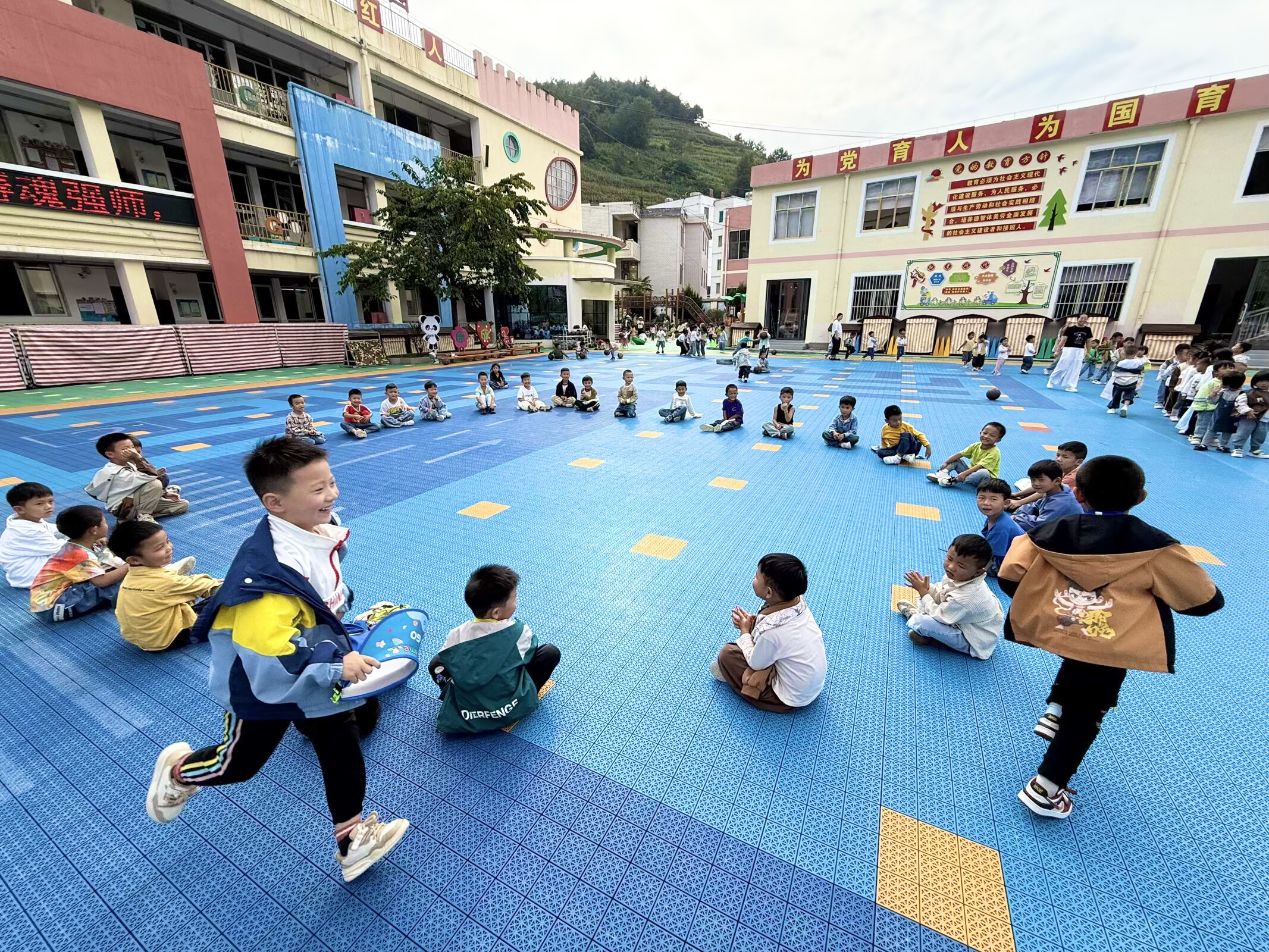 赫章县哲庄镇中心幼儿园的孩子们在玩游戏