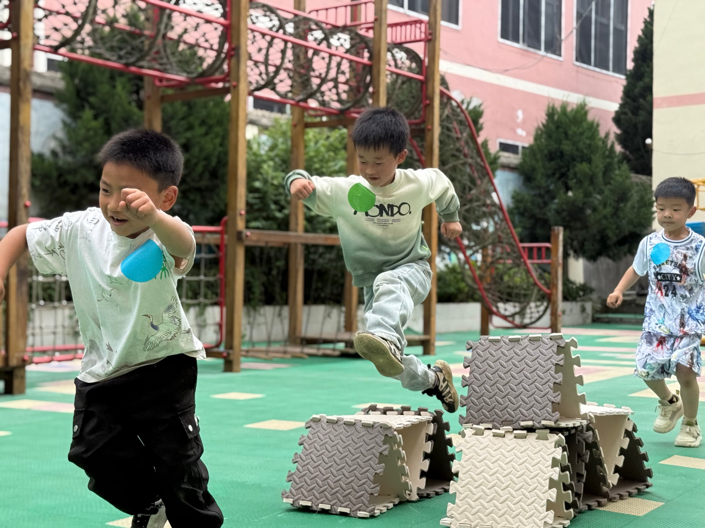 金银山街道光彩幼儿园(赫章县第四幼儿园)里孩子在快乐玩耍