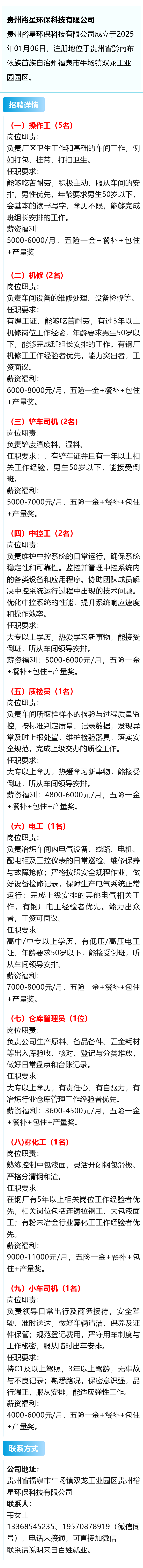 月薪可达11000元!五险一金+餐补+包住+产量奖!贵州招聘操作工、铲车司机 、质检员等岗位!