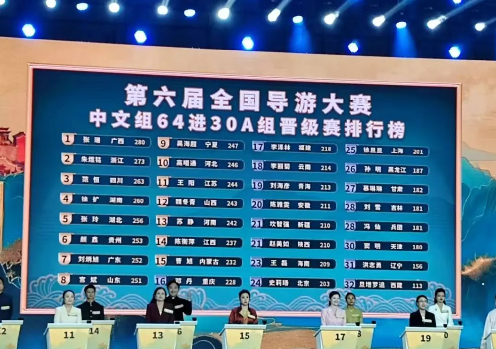 贵州代表队在此次全国性赛事中实现近十余年的历史性突破:英文、中文选手双双闯入全国三十强。其中英文组选手成绩位列全国第十名,中文组选手位列全国第十七名,这一成绩不仅突破了贵州在全国导游大赛中的最佳纪录,更标志着贵州导游队伍专业水平实现质的飞跃,为贵州文旅事业发展注入强劲动力。