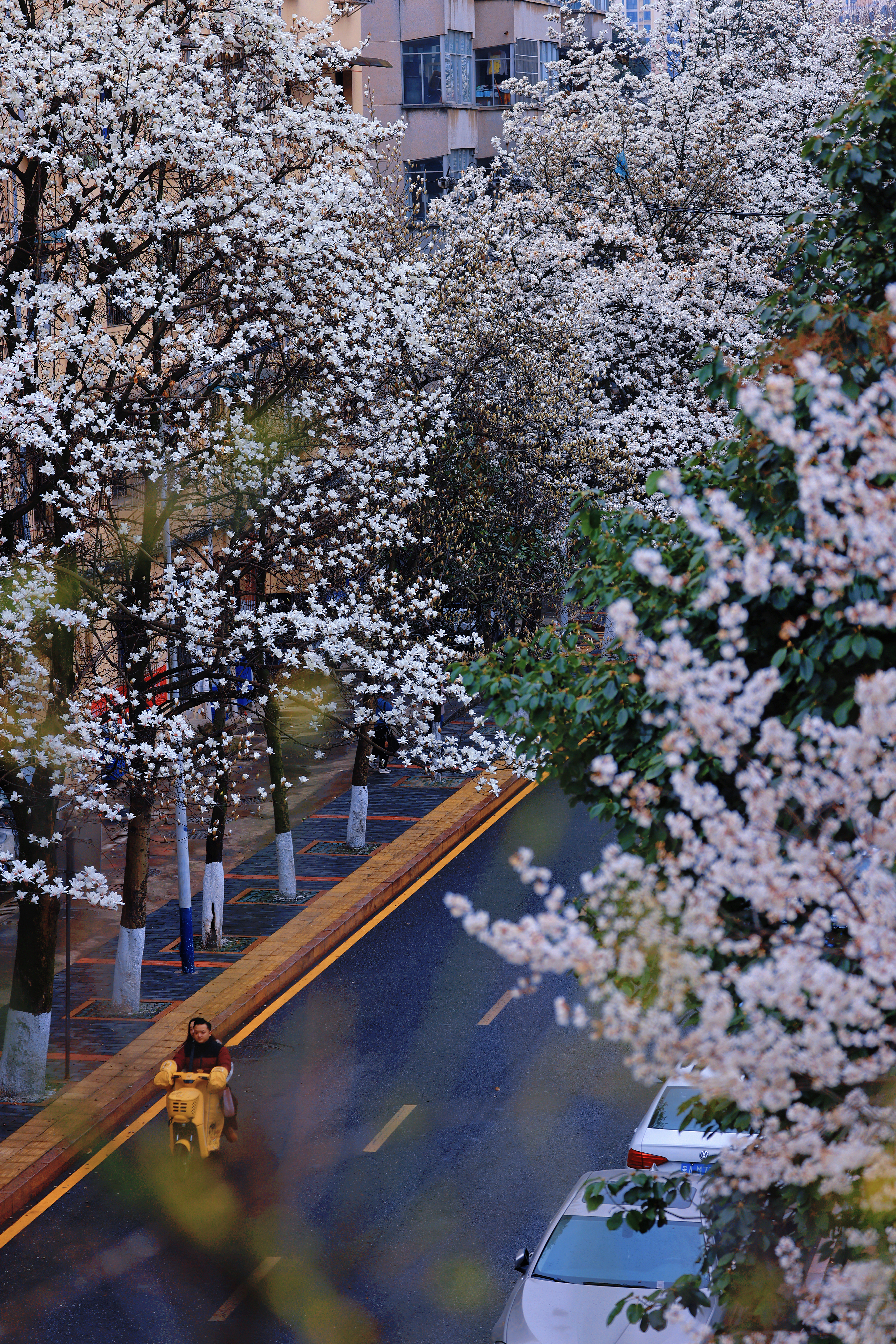当下,虽乍暖还寒,贵阳市白云区朝晖路却已一路春色,迎来了一年中最美的时节——道路两侧的玉兰花竞相绽放。如云似雪的白色花瓣与湛蓝天空相映成画,馥郁芬芳引得游人如织。