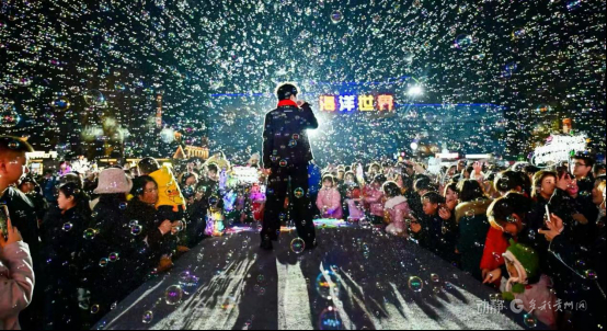而在贵阳市多彩贵州城举办的“千山和鸣·万象更新”系列活动中,国风巡游表演、文创市集、“多彩星光秀”首届贵阳大学生跨年歌会、黔港之夜·经典金曲演唱会等沉浸式的游乐项目和多元消费场景,满足游客不同的休闲娱乐需求。