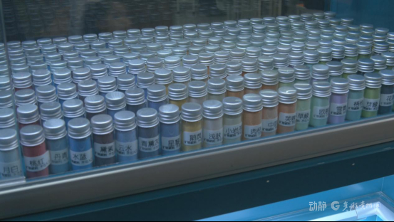 展览以中华传统色彩美学为文化脉络,展出30组精美馆藏矿物标本、600余瓶矿物颜料和50位艺术家创作的当代岩彩艺术作品,还设置了矿物颜料触摸墙和颜料手作体验互动。
