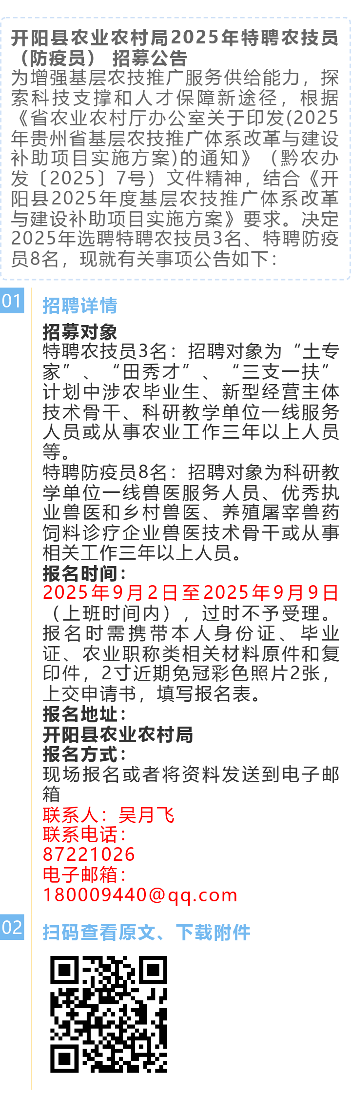 【事业单位】开阳县农业农村局招聘!报名截止时间:2025年9月9日!
