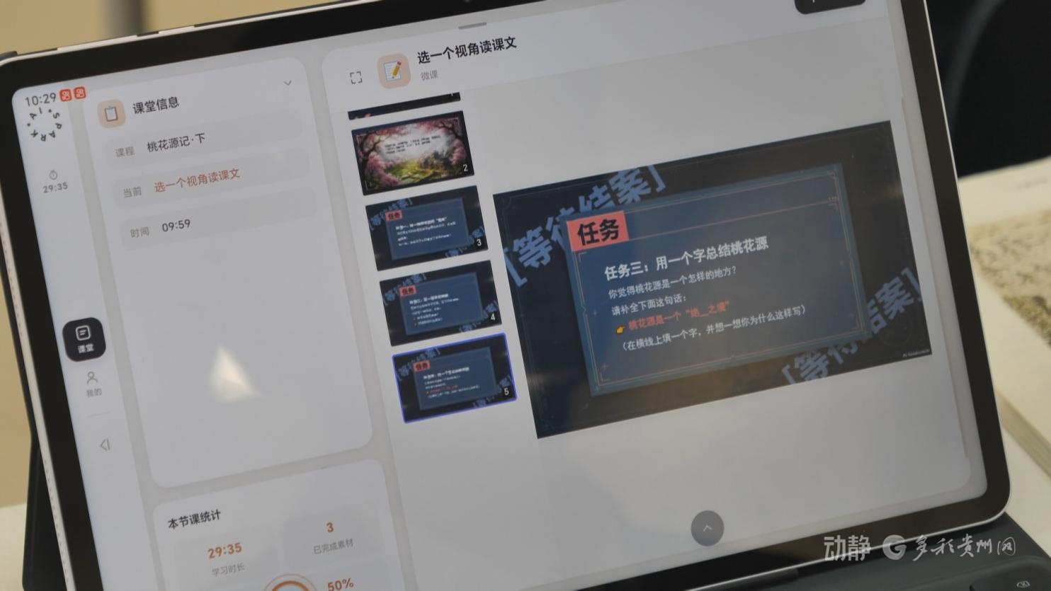 如果说智能消费、自动驾驶是AI为生活“添便利”,那在教育领域,人工智能则为课堂“增活力”,打破传统教学模式,实现因材施教。在贵阳海嘉学校,一堂融入AI技术的《桃花源记》智慧课堂,让学习变得生动又高效。