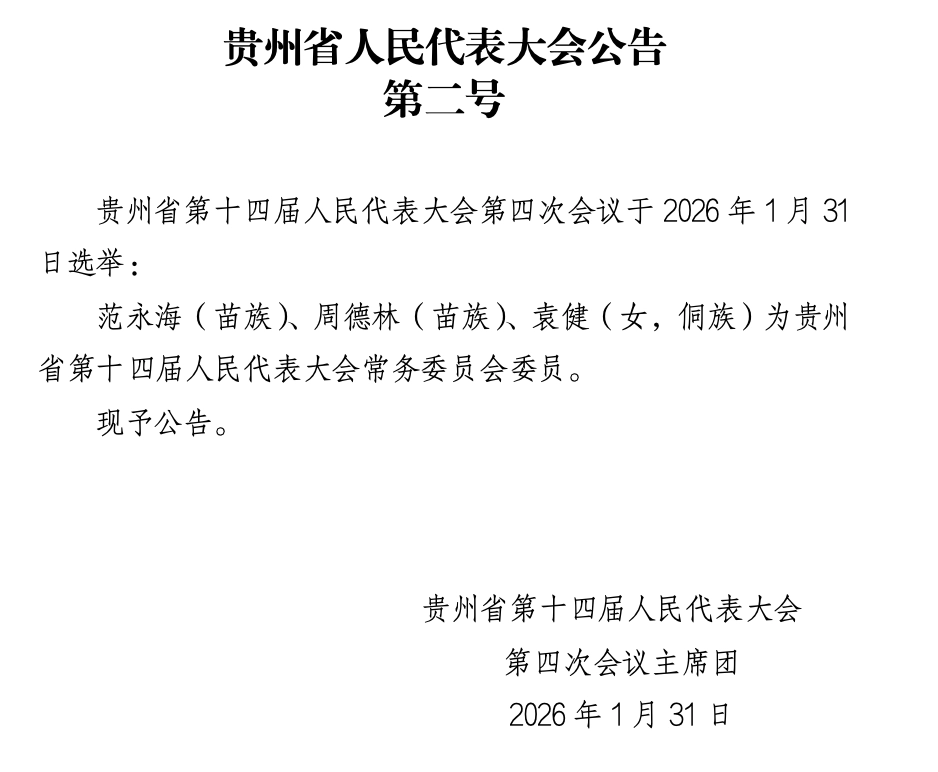 3人当选贵州省第十四届人民代表大会常务委员会委员