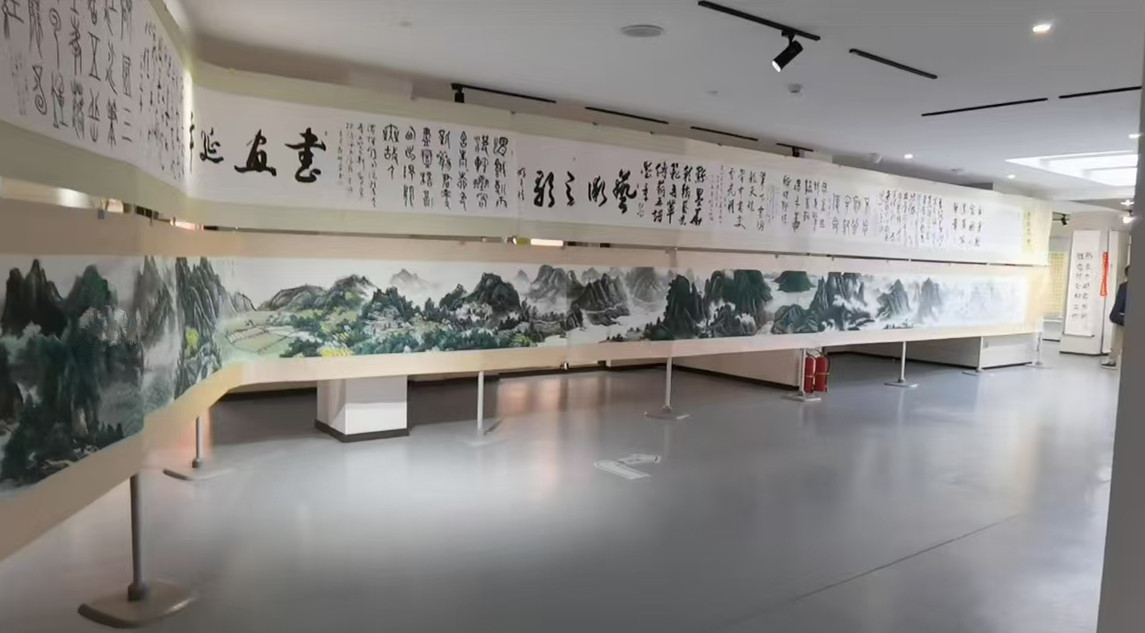 为纪念成立四十周年,研究会组织会员集体创作了四幅重磅作品:长达40米的中国画长卷《旖旎红水河》,由83岁的罗道全带领18位画家两次赴红水河流域采风完成;巨幅花鸟画《百花齐放图》《盛世中华-牡丹图》,分别由13名花鸟画家和8名专攻牡丹的画家协作绘制,经会长钟绍让润色点睛;另有一幅40米书法长卷,汇聚多位书法家笔力,展现颜筋柳骨的传统魅力。四件巨作在展览中备受瞩目,充分体现了研究会团结协作、精益求精的艺术精神。