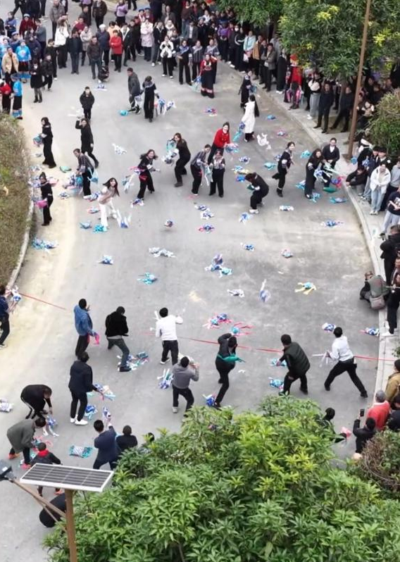布依族标志性民俗“打糠包”,是群众和游客互动交流、共庆新春的一种别样形式。活动中,青年男女手持糠包相互抛接,在欢乐互动中传递新春美好祝福。