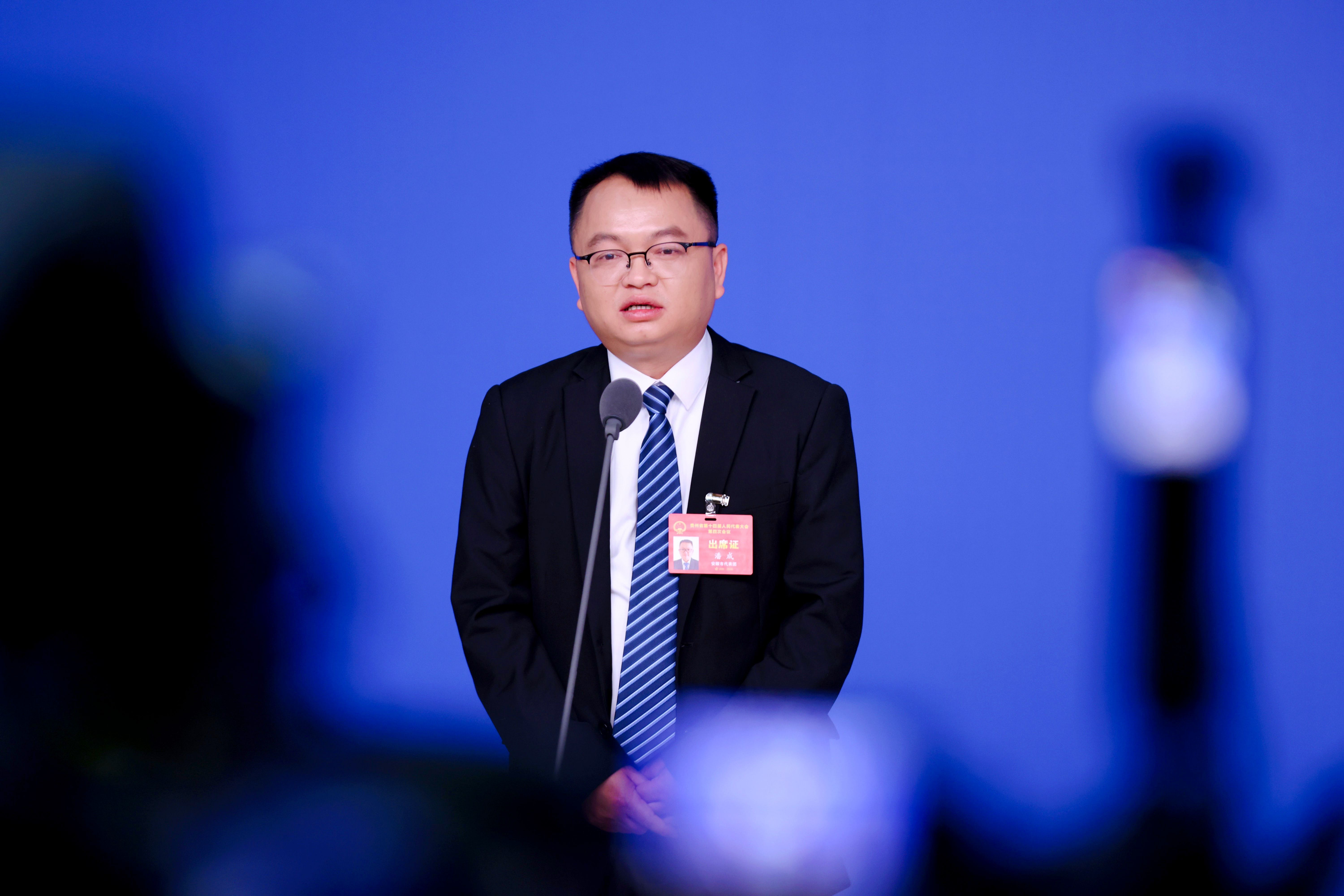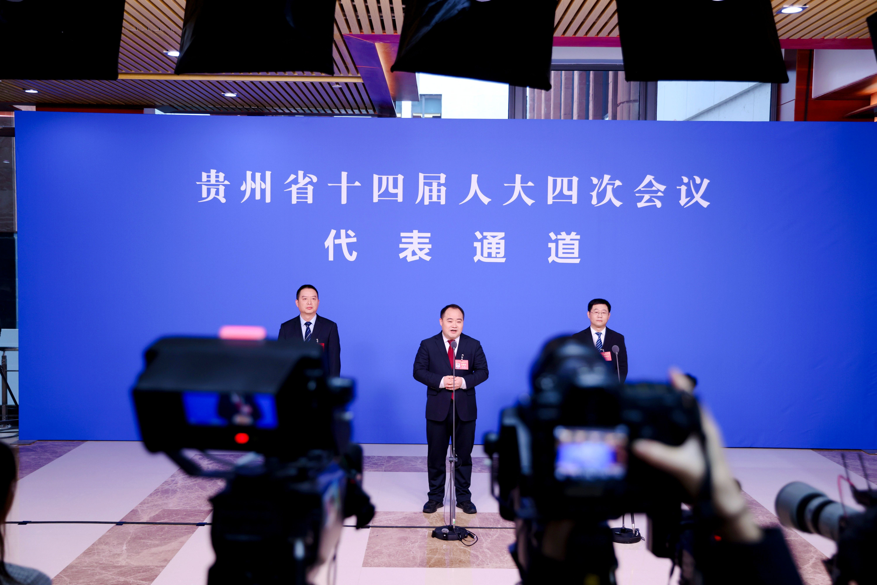 贵州省十四届人大四次会议首场“代表通道”现场
