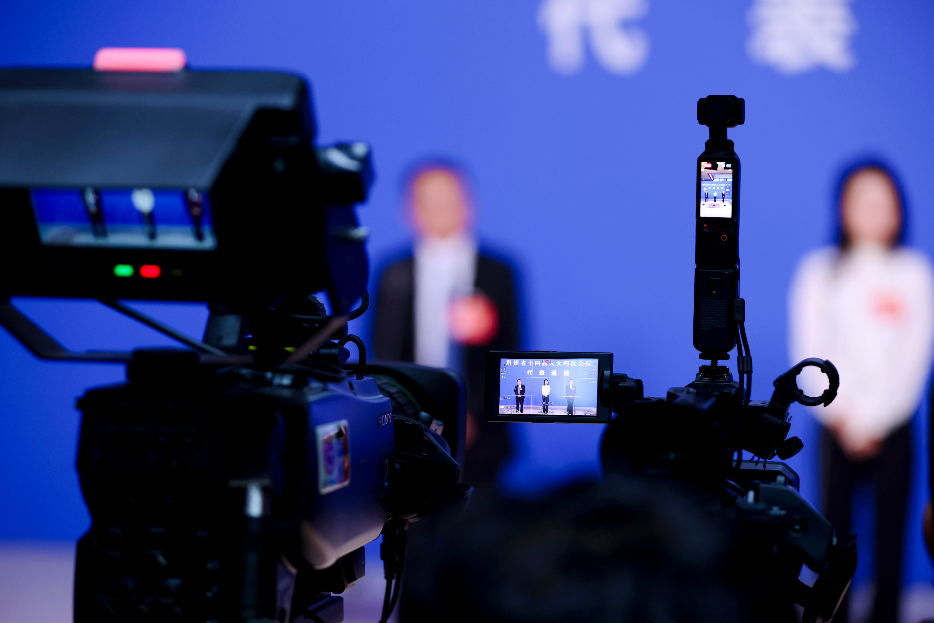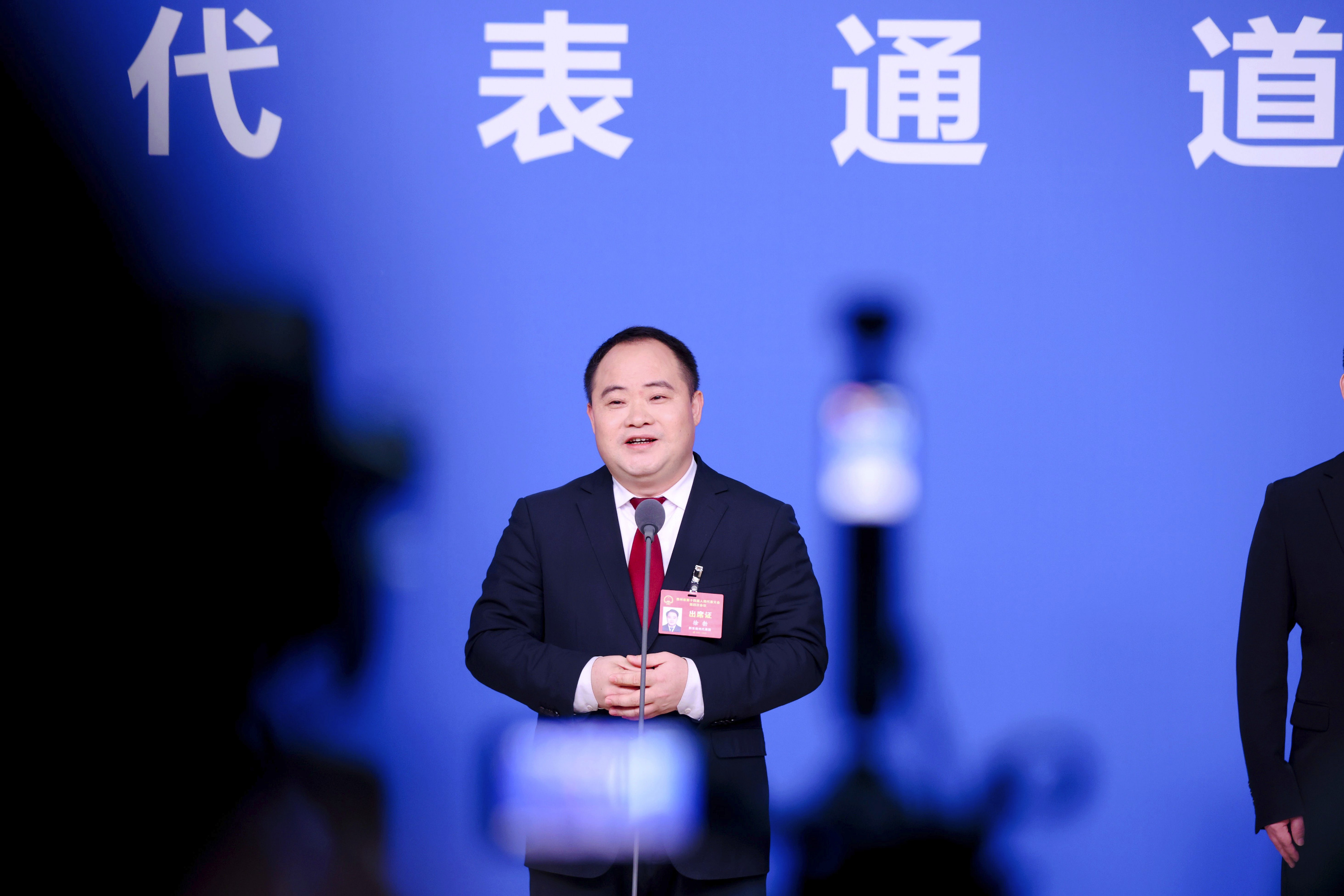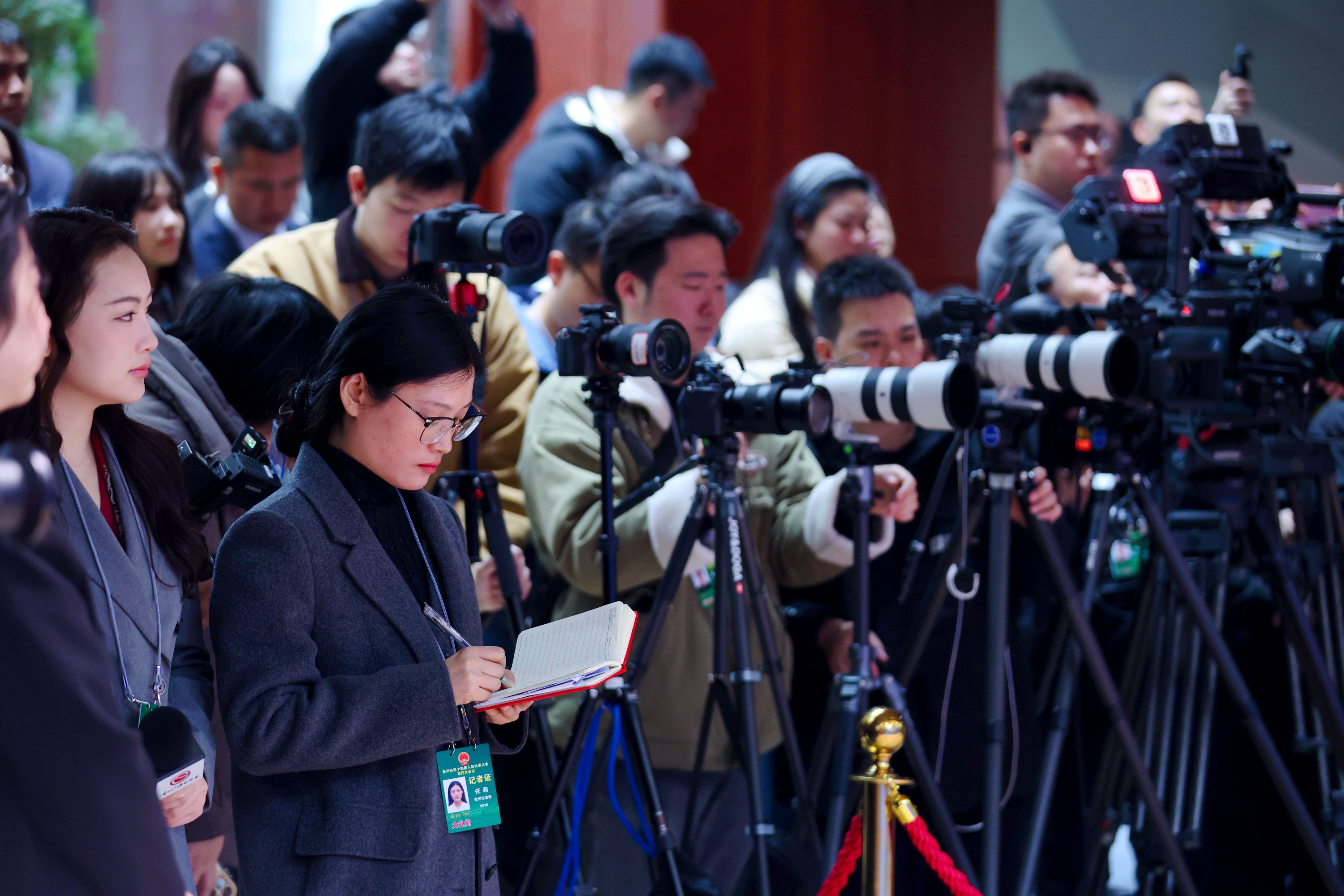 贵州省十四届人大四次会议首场“代表通道”采访现场