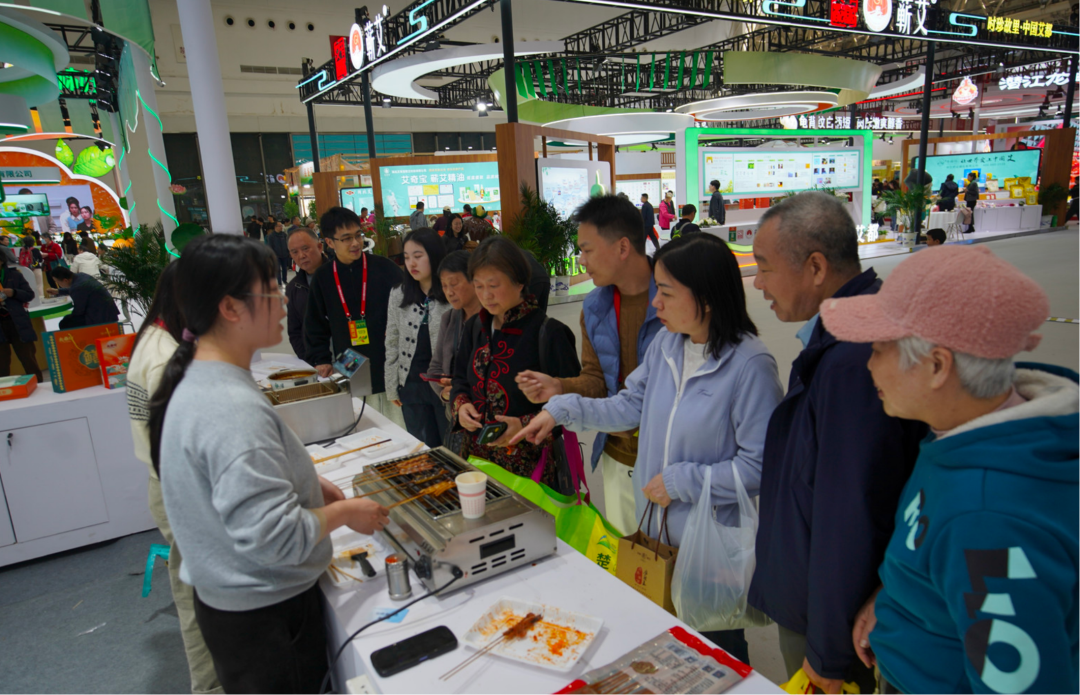 “仙桃黄鳝”主题特装展区内热闹非凡,鲜嫩肥美的鳝片撒上孜然粉,散发出浓浓的烟火气息;筋道爽口的鳝鱼丝淋上秘制酱汁,荡漾起记忆中的家乡风味……烤鳝片、鳝鱼丝、鳝鱼酱、黄鳝小分子肽等系列精深加工产品争“香”斗“宴”,吸引了不少市民观众排队品鉴、购买,成为农博会现场一大焦点。