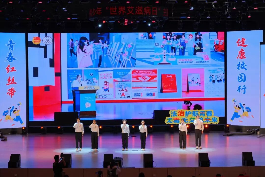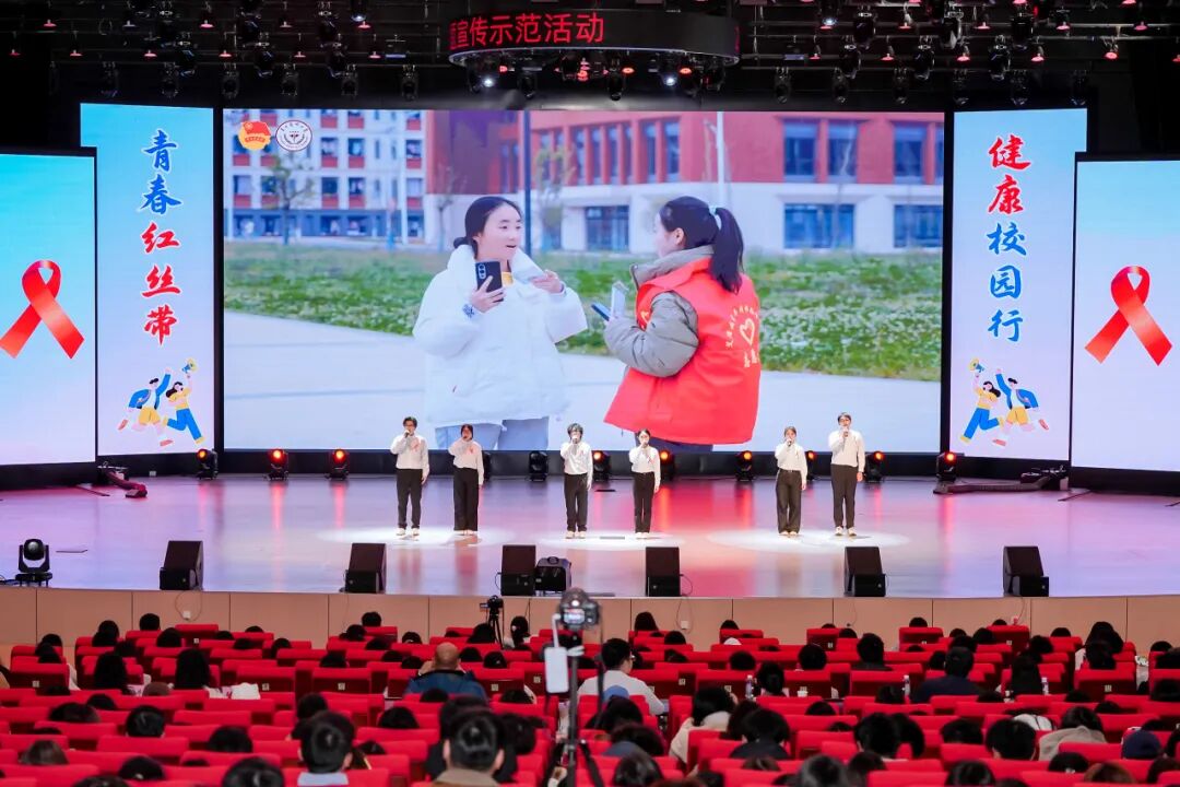 《拥抱你》防艾主题合唱传递“消除歧视、关爱包容”的理念,《以“艾”之名,温暖相拥》情景剧生动揭示艾滋病传播风险与防护要点,《医路青春,无艾明天》主题朗诵展现青少年主动参与防艾行动、守护青春健康的责任担当,《防艾一起来,健康向未来》健康操实现了艺术传播与教育引导有机统一。
