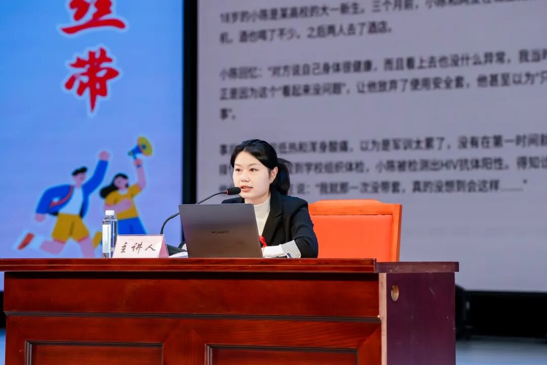 在防艾专题讲座环节,疾控专家王茂思医师以《知艾防艾,青春无“碍”》为主题,系统讲解了艾滋病的危害、传播途径和预防措施等,为在场师生带来一堂别开生面的健康教育课。