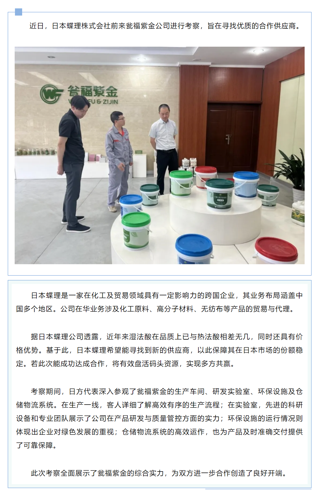 日本蝶理考察瓮福紫金 寻求湿法磷酸合作新机遇