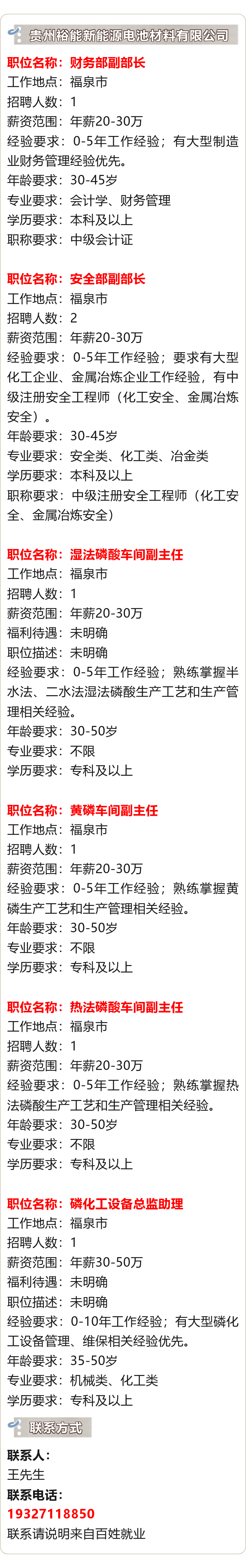 年薪20-50万!贵州裕能新能源电池材料有限公司多岗招聘!