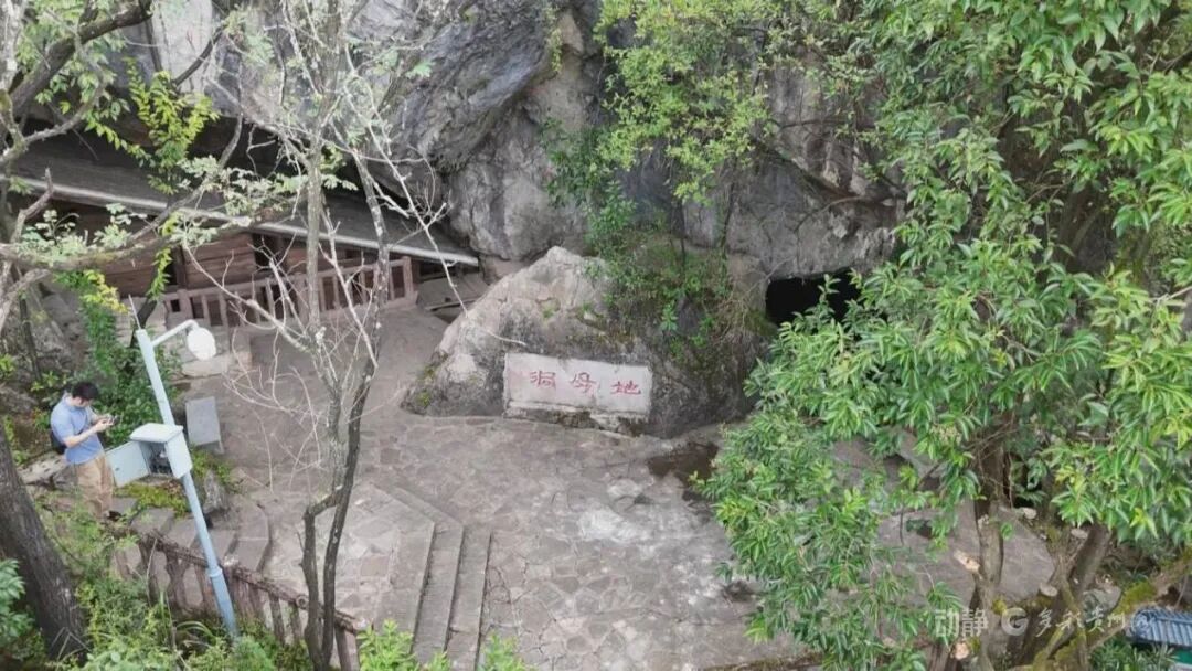 地母洞位于贵阳市北郊(现鹿冲关国家森林公园内),是喀斯特天然溶洞,入洞口形状近正三角形,高约四五丈,深约七八丈,顶部布满钟乳石。
