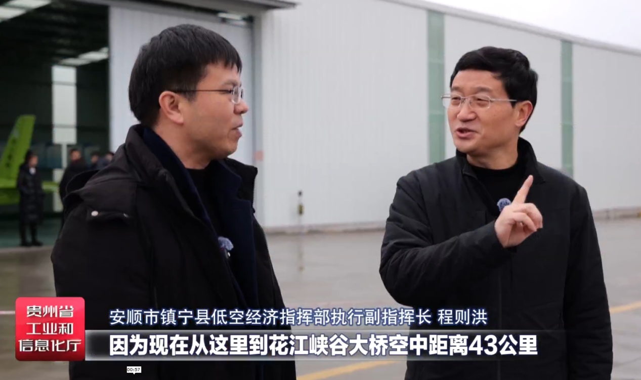 安顺市镇宁县低空经济指挥部执行副指挥长程则洪:下一步我们就要从场景应用发力。因为现在从这里到花江峡谷大桥空中距离是43公里,从这里到黄果树、到花江峡谷大桥,已经申请了50公里的空域范围,争取今年7月份飞起来。