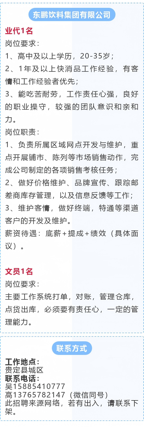 【知名企业】东鹏饮料集团有限公司招聘文员等岗位!高中起报!