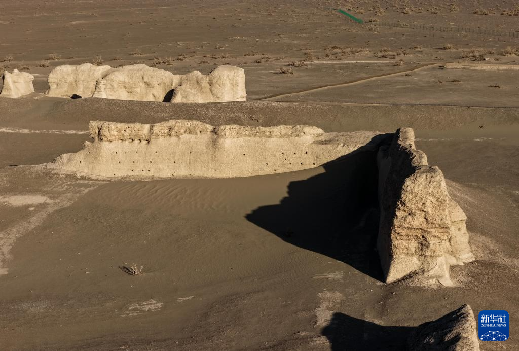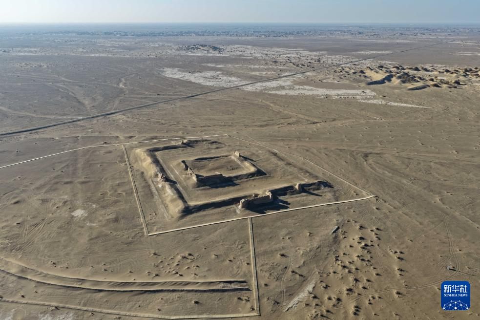 这是11月3日在内蒙古阿拉善盟额济纳旗拍摄的居延遗址中的唐代大同城遗址(无人机照片)。新华社记者 李志鹏 摄
