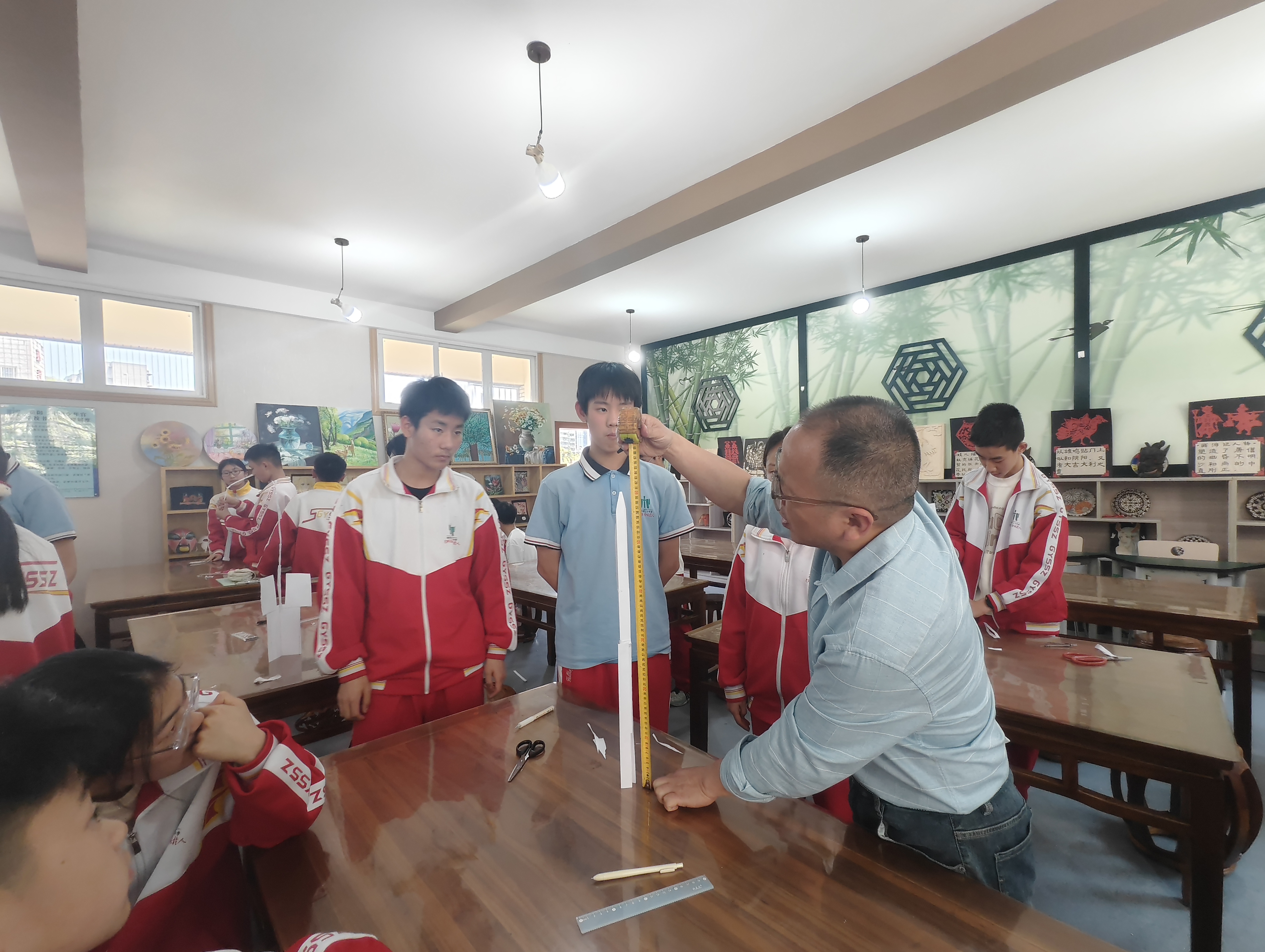 制作结束后,两校师生对搭建高度进行测量,以厘米为单位记录成绩,确保过程公开透明。从十几厘米到71厘米、73厘米、91厘米……现场欢呼声、惊叹声此起彼伏,每一次高度突破都凝聚着同学们的智慧与坚持。最终,贵阳市第三十中学学子凭借精巧的结构设计与默契的团队配合,以91厘米的优异成绩赢得现场阵阵喝彩。