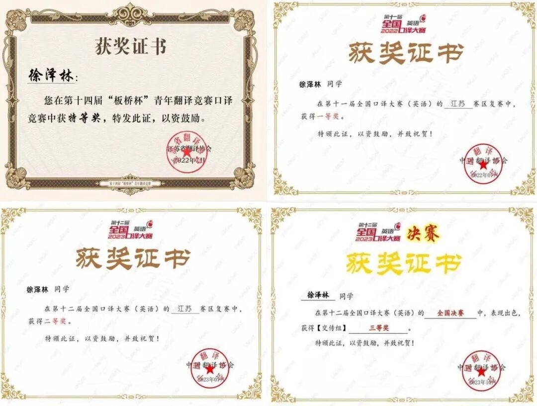 徐泽林以优异成绩
