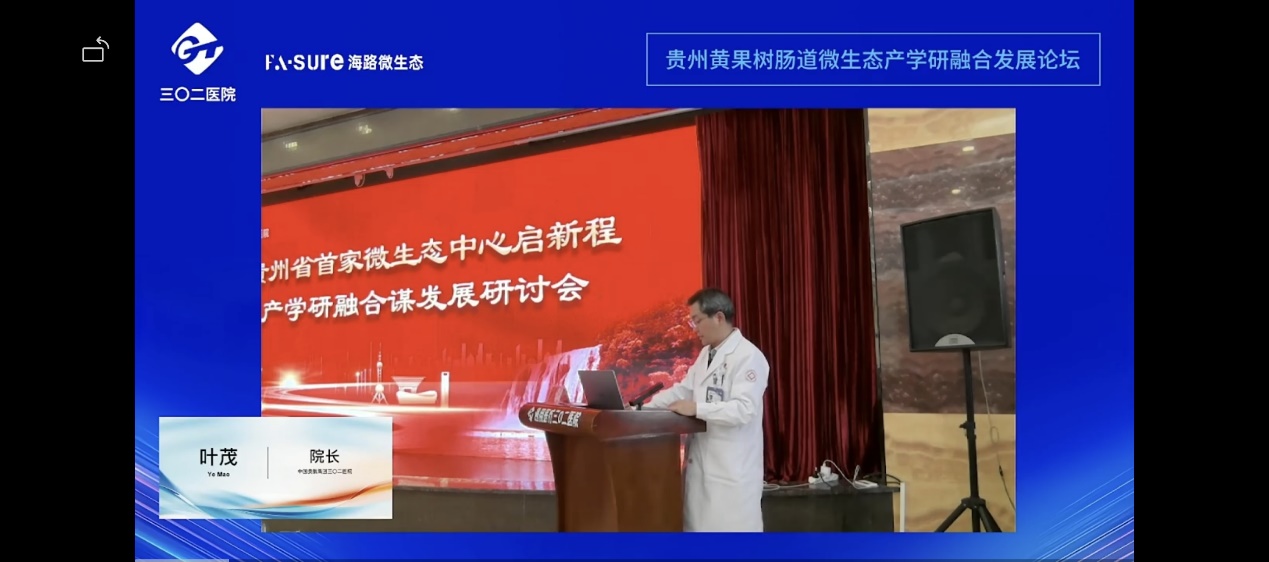 紧接着,中国贵航集团三〇二医院院长、党委副书记叶茂为大会致开幕辞。叶茂院长在致辞中强调了微生态医学在当代疾病治疗中的重要性,并表示医院微生态中心的成立是响应国家“产学研”融合发展的积极实践,旨在提升贵州省肠菌移植(FMT)技术的临床应用水平,最终造福广大患者。