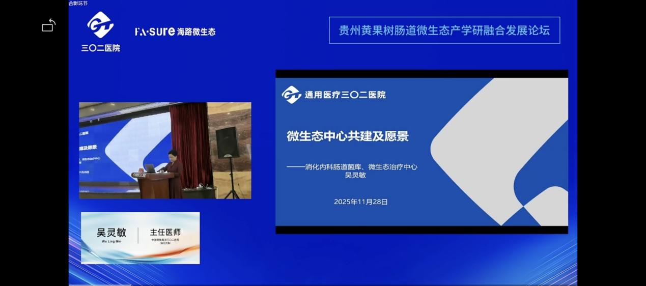 2025年11月28日,由中国贵航集团三〇二医院主办、湖南海路微生态医药科技有限公司承办的“贵州省首家微生态中心启新程,产学研融合谋发展研讨会”在中国贵航集团三〇二医院1号楼六楼大会议室成功举办。本次会议标志着贵州省在微生态临床研究与应用领域迈出了关键一步。