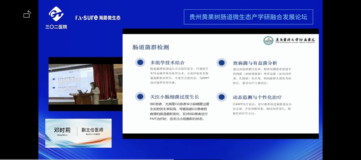 多学科融合发展:复旦大学附属闵行医院的王立顺主任报告了“中药益生元调控肠道菌群并协同发挥健康作用的机制与应用前景”,连接起传统中医药与现代微生态学。遵义医科大学附属医院邓时莉副主任医师对《肠菌移植治疗炎症性肠病的专家共识(2025版)》进行了解读,为临床实践提供了权威指导。贵州中医药大学附属医院王锦程医生则展望了“苗医药与微生态的结合前景”,极具地方特色与创新性。