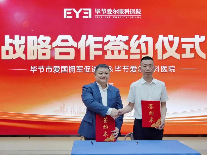 近日,毕节市爱国拥军促进会与毕节爱尔眼科医院举行“情暖老兵·守护光明”公益行动战略合作签约仪式。