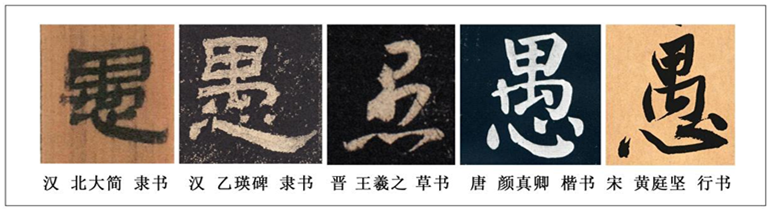 秦统一的小篆继承了金文的字形,依然是“禺”+“心”的结构(图3),心中有“禺”即是“愚”,即以穿山甲般的憨厚态度面对世界——不争巧、不炫智、不投机。这种“愚”,并非无知,而是一种主动选择的淳朴,如《庄子》所言“古之人在混冥之中”,不辨是非,却合于大道。