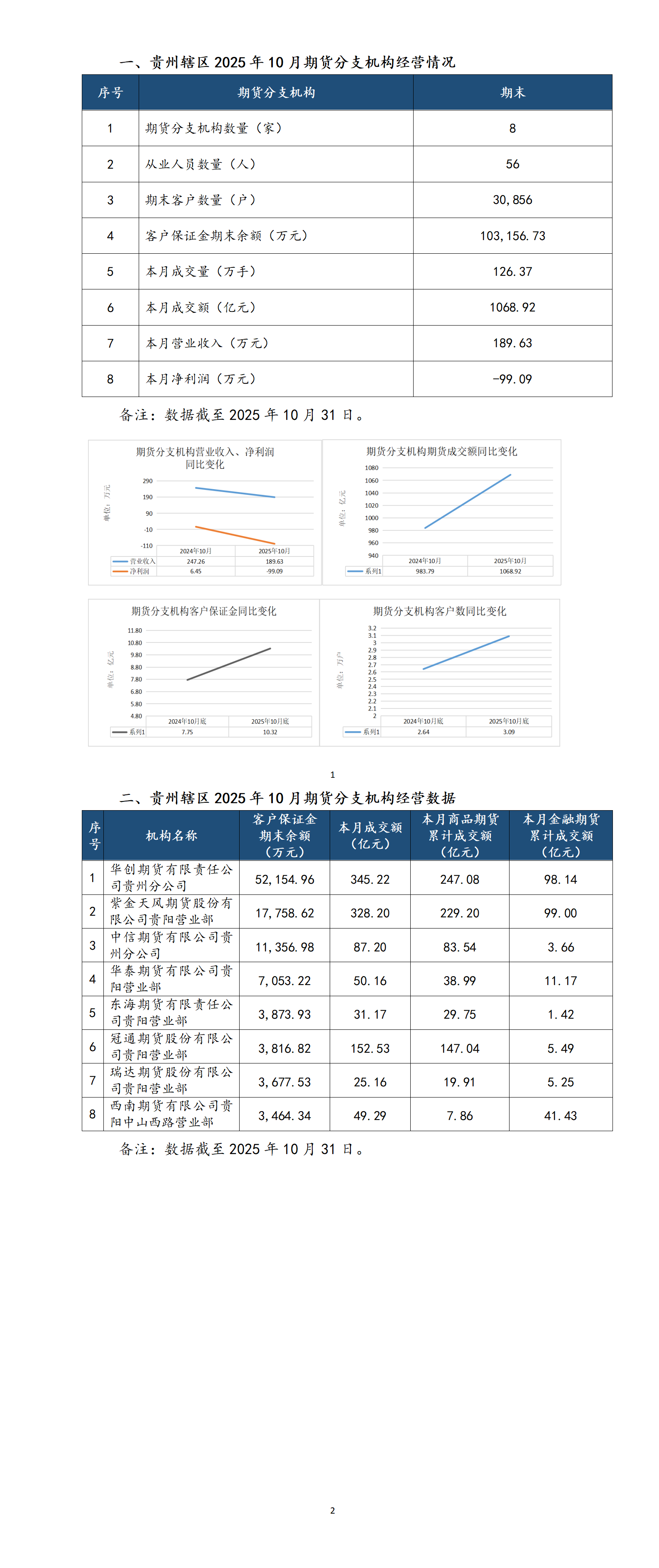 黔证资讯丨贵州资本市场月报:期货经营机构经营情况统计信息(2025年10月)