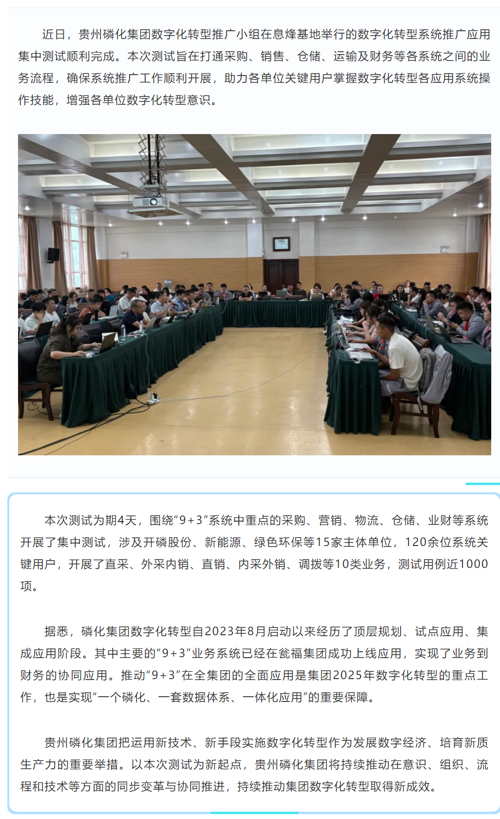 贵州磷化集团数字化转型系统推广应用集中测试顺利完成