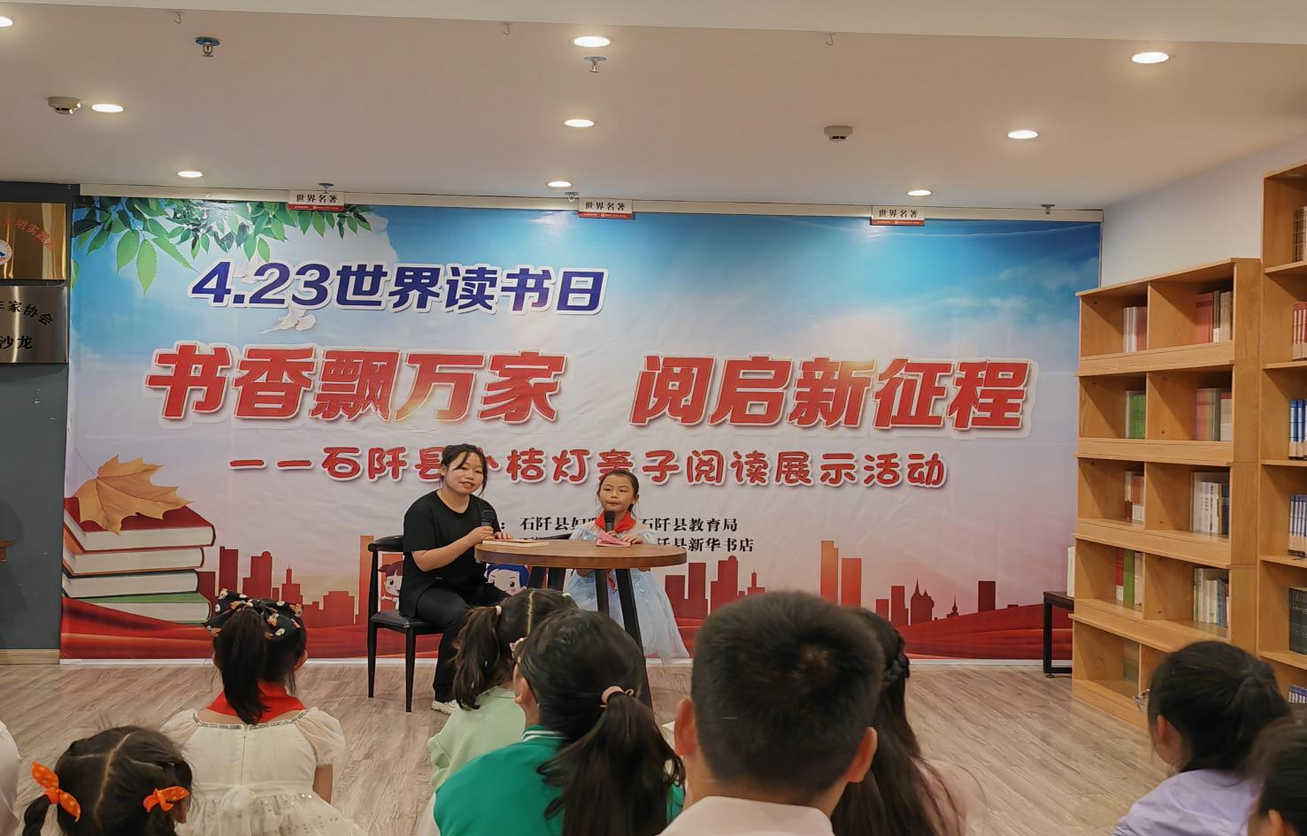4月22日,石阡县妇联、县教育局、县文旅局、县新华书店开展以“书香飘万家 阅启新征程”为主题的小桔灯亲子阅读展示活动在新华文渊超市石阡店开展。活动集中展示了来自县城城区6所小学推荐的13组家庭带来的阅读分享表演。出席领导为荣获阅读小明星、最美书香家庭的获奖代表颁发了荣誉证书并合影留恋。活动赠送由县新华书店、县文广局提供的图书共计100余册。