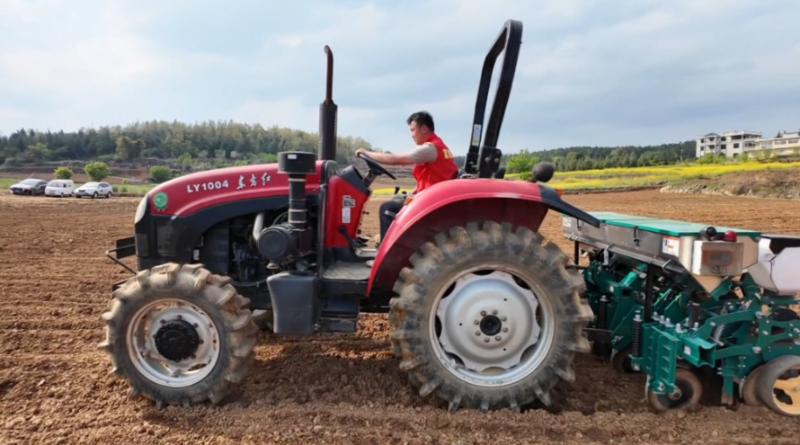 眼下正值春耕春种时节,在贵州省黔西市金碧镇,种粮大户杨平驾驶经过改良的播种机穿梭作业播种玉米,只用了十几分钟,一块10余亩的田地便已完成播种。