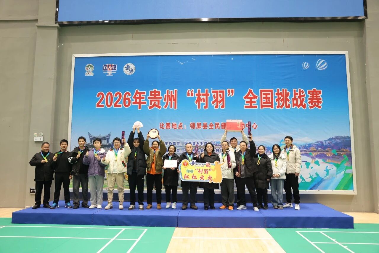 1月11日,2026年贵州“村羽”全国挑战赛第二周周末赛事在锦屏县全民健身中心圆满落幕。经过两天的激烈角逐,剑河县仰阿莎温泉村队从17支参赛队伍中脱颖而出,夺得本周冠军。