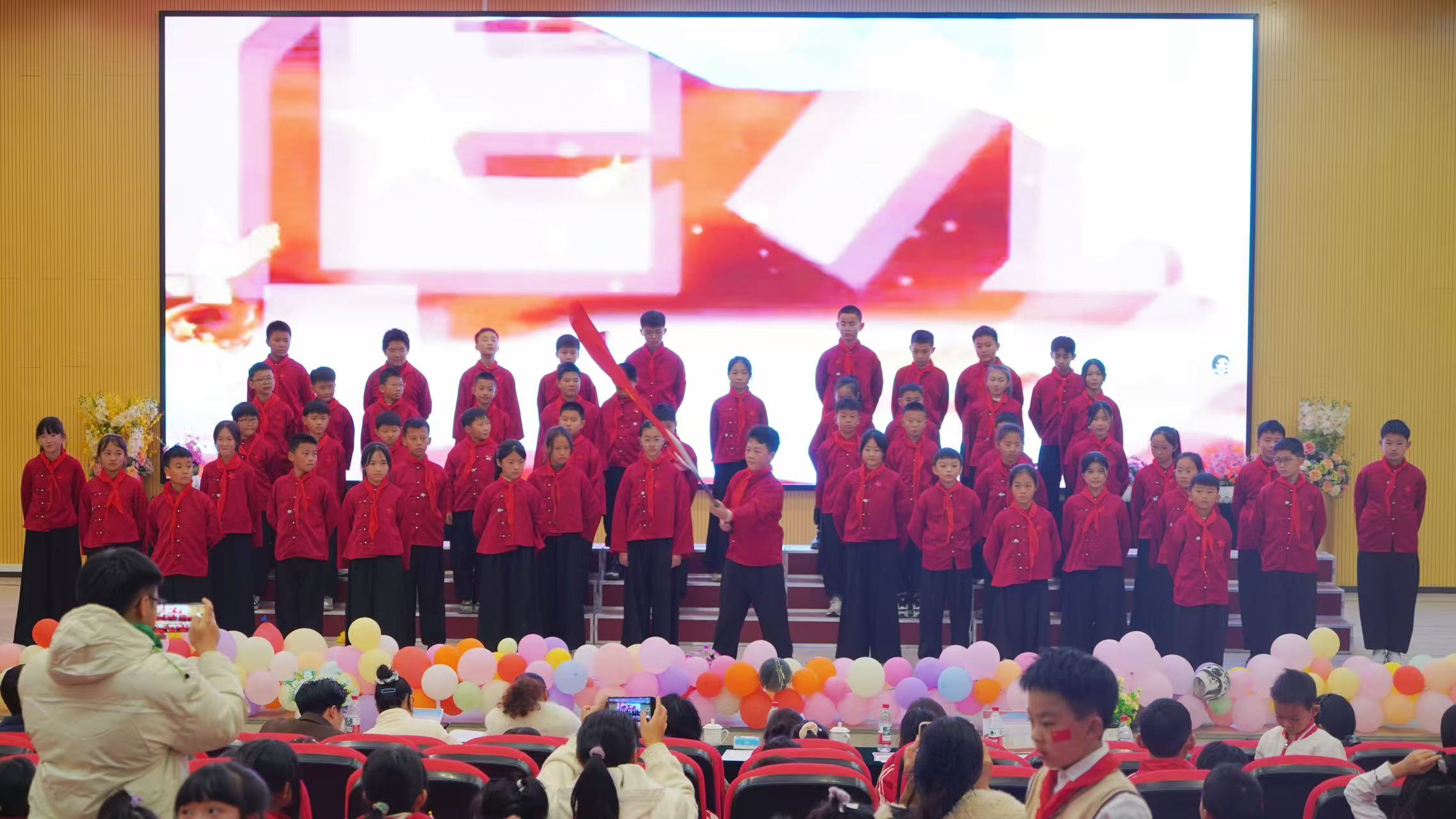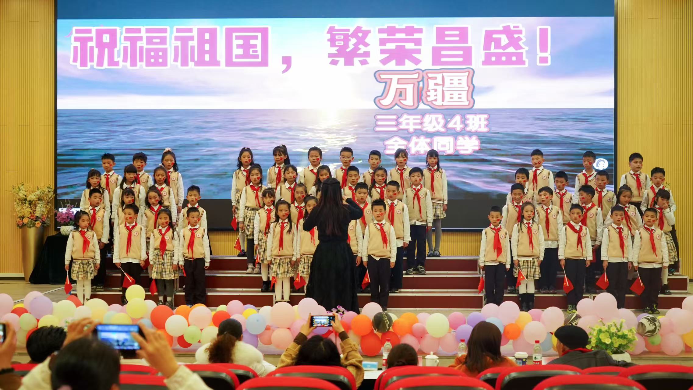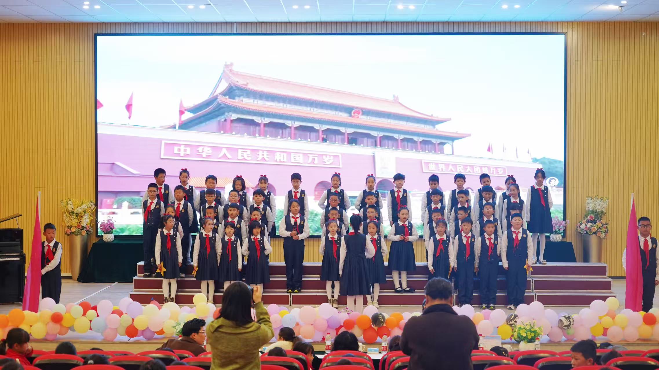 比赛在贵阳红色艺术团嘉宾们的演奏中拉开帷幕。各班级依次登台献唱。一年级学生用稚嫩的嗓音演绎《祖国是我家》《红红的太阳》传递对祖国的纯真热爱;二年级学生唱响《少年有志》《我爱北京天安门》,抒发远大志向与对首都的向往;三年级学生带来的《强军战歌》《打靶归来》,尽显保家卫国的壮志豪情;四至六年级学子则通过《如愿》《祖国有我》《少年中国说》等曲目,诠释对祖国的深情依恋与新时代少年的责任担当,纷纷展现出良好的精神风貌与强大的团队凝聚力。