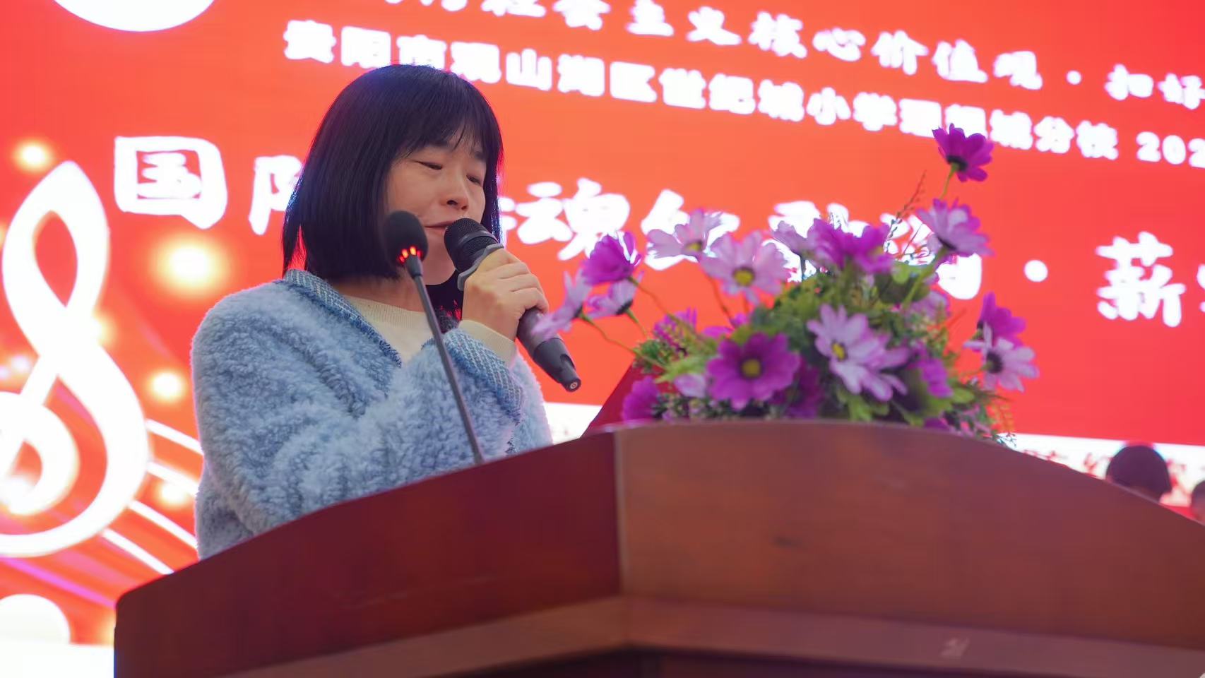 毋丽华宣读比赛评分标准,并鼓励大家放松心态,期待各班赛出风格、赛出实力,在舞台上展现最好的自己。