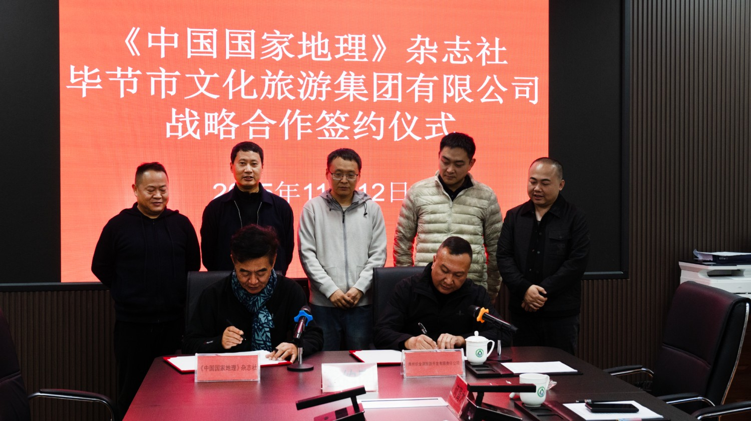 毕节市文旅集团公司党委副书记阳轴,以及《中国国家地理》杂志社社长李栓科代表双方签署了协议。