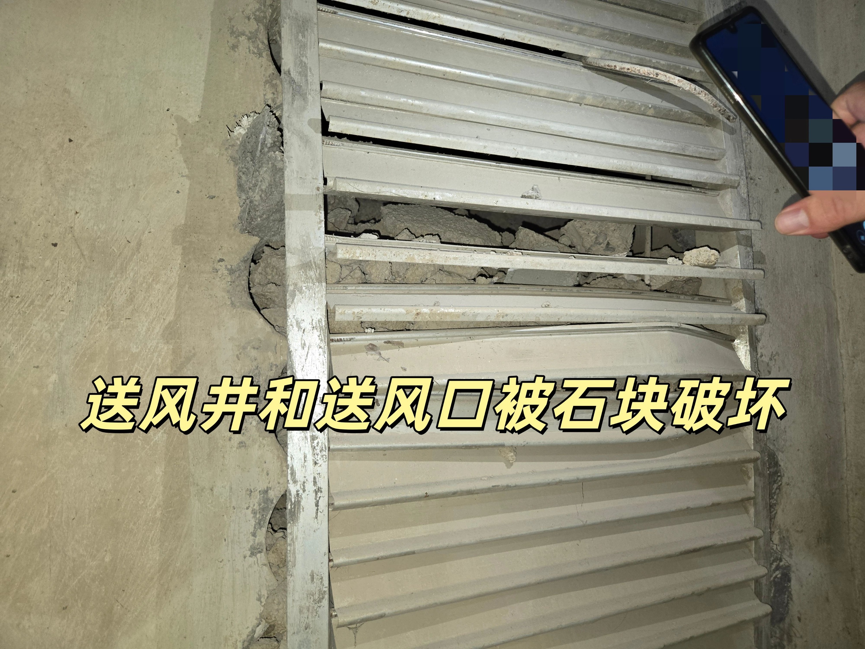 ⑩地下一层楼梯间内送风井和送风口被石块破坏,不符合《建筑防烟排烟系统技术标准》GB51251-2017第3.3.7条之规定,属于消防设施未保持完好有效,违反了《中华人民共和国消防法》第十六条第一款第(二)项之规定。