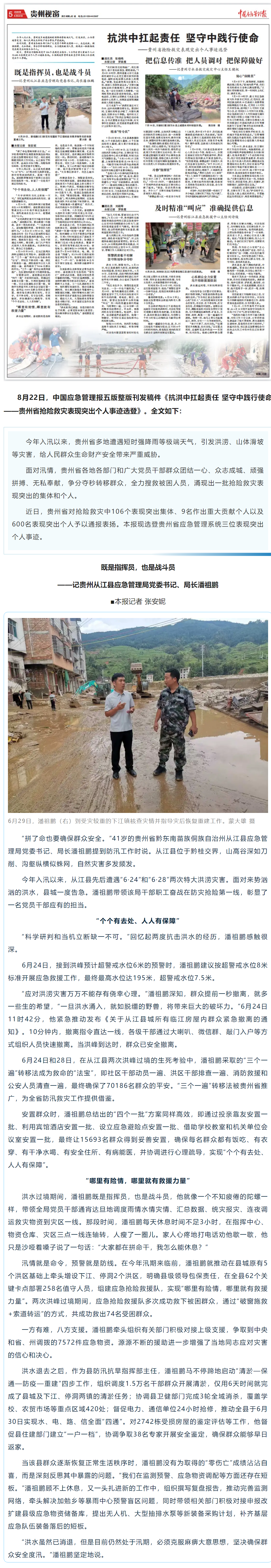 抗洪中扛起责任 坚守中践行使命——贵州省抢险救灾表现突出个人事迹选登