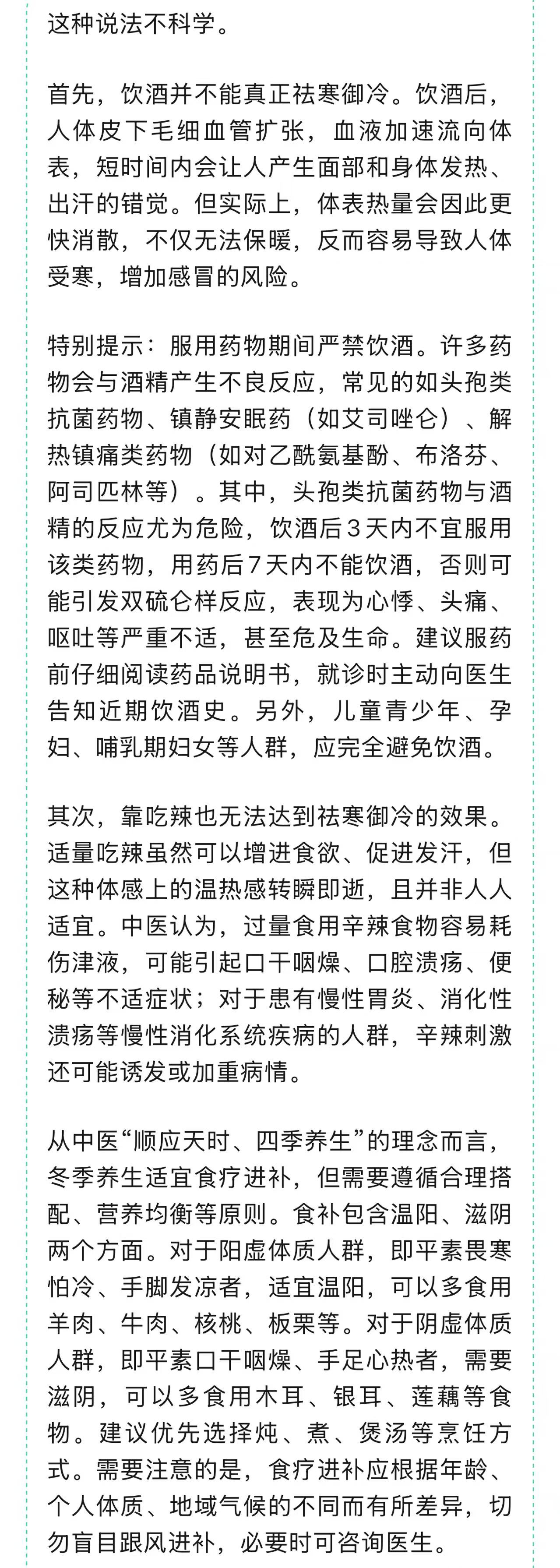 喝酒、吃辣可以祛寒御冷……是真是假?