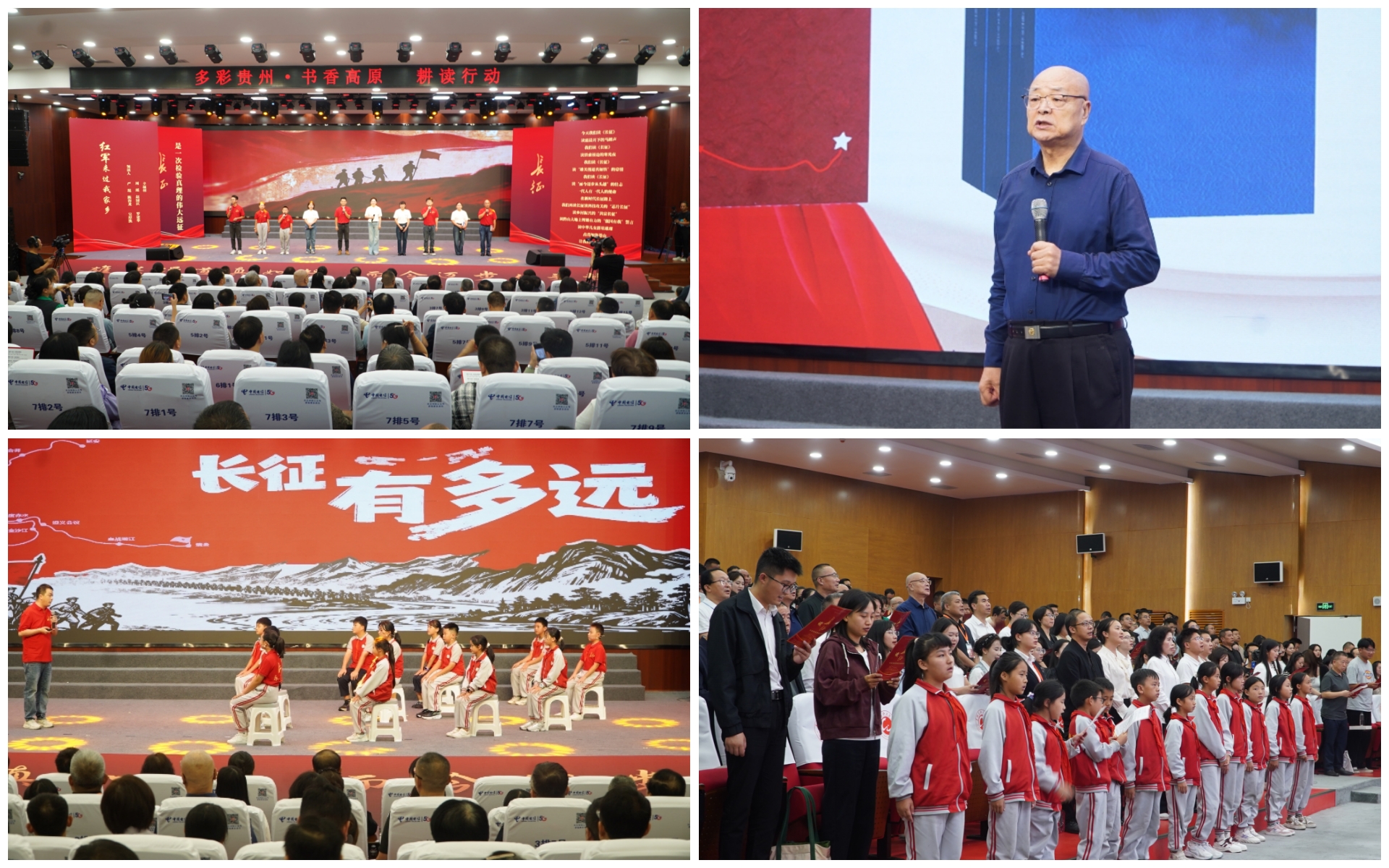 9月22日,“读长征”阅读漂流总结活动在娄山关脚下的贵州长征干部学院举行。当来自不同领域、不同年龄的阅读分享者出现在会场大屏幕上时,共同见证着这场关于“长征”的阅读漂流活动以媒体为桥梁,用阅读串联起历史与未来,将长征精神播撒于新时代贵州的每一寸土地。现场,来自全省35个漂流点的荐读人代表深情演绎《红军来过我家乡》,在铿锵词句中再现那段充满艰险与信仰的征程;历史教研员冯铁辛为红军小学的孩子们带来《长征有多远》阅读示范课,引导他们在自身成长中思考长征精神的时代价值;著名军旅作家王树增先生,以详实的历史细节和鲜活的人物事迹,带领大家重回烽火岁月,感悟信仰的力量与革命精神的硬度;一曲《如愿》,吟唱出红军战士曾经梦想的盛世繁华,也唱出了我们这一代的感念与使命。活动最后,全体参与者共读“伟大长征精神”,誓言在新时代长征路上砥砺前行。这不仅是一场全域化的阅读漂流,更是一次精神和信仰的洗礼与接力!
