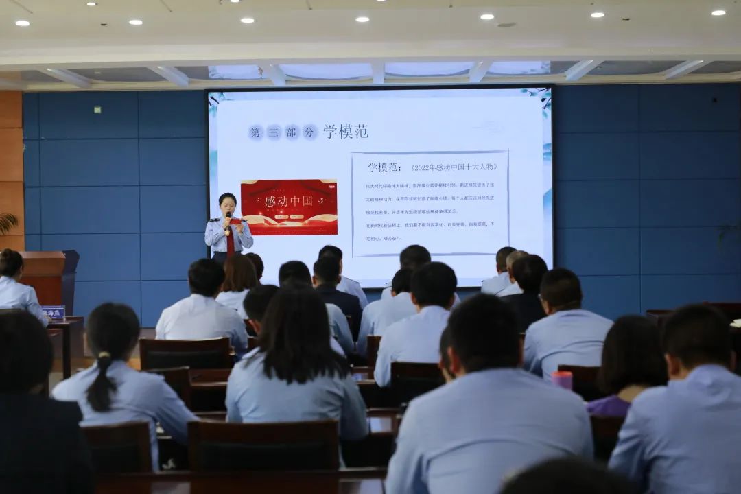 在“学模范”环节,大家共同观看了《2022年感动中国十大人物》,彭士禄、杨振宁等人的故事书写了中国人的年度精神史诗,让大家深受触动。他们都是平凡的人,却用自己的行动和奉献精神,为国家和社会作出了重大的贡献。一个个感人至深的故事,对每个人都是一次心灵的洗礼,更加坚定为国为民奉献的信念。