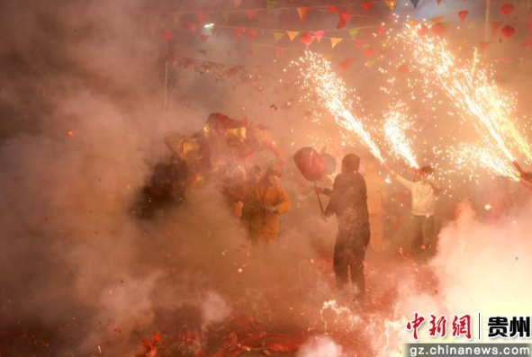 2月25日,舞龙人员在贵州省遵义市播州区三合镇进行舞龙表演。李仁军 摄